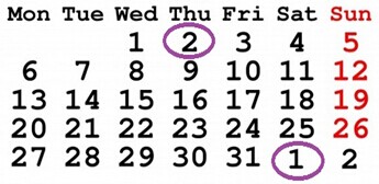 您在本月2日购买1个月的"每周三节课"套餐,有效期则至次月1日。 您即可在"该月2日~5日<第一周>","6日~12日<第二周>","13日~19日<第三周>" "20日~26日<第四周>" ,"27日~次月1日<第五周>"分别上课3次,共上15节课。